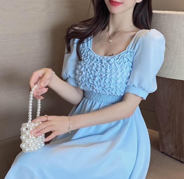 2024春夏新作 女 レディース ハイウエスト 半袖 ミニ ワンピース ドレス 台型スカート S-XL