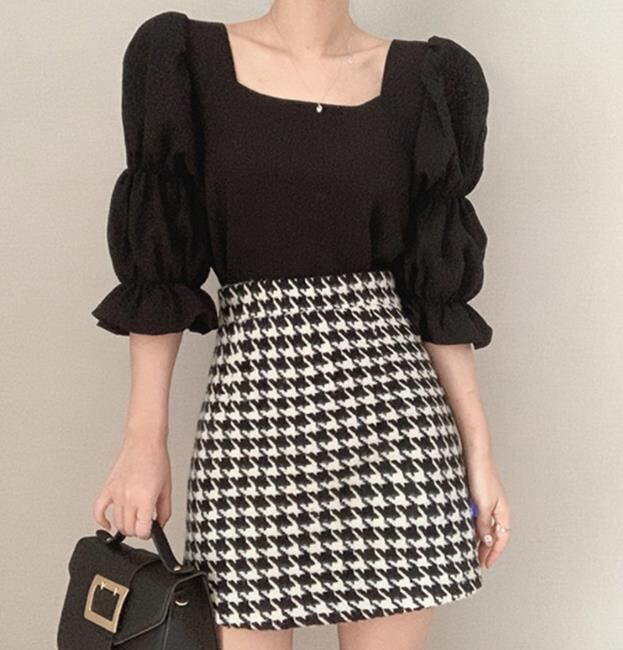 2024春夏新作 トップス 女 レディース 半袖 無地 パフスリーブ シャツ ブラウス インナー S-M