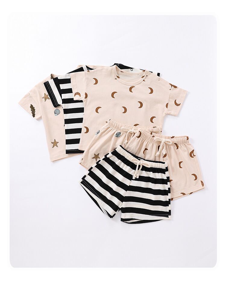子供服 半袖 Tシャツ 赤ちゃん 綿 韓国ファッション 男女兼用 ラウンドネック トップス 3色 2点セット