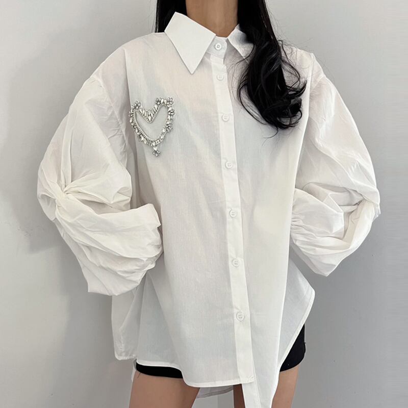 トップス シャツ カジュアルシャツ 長袖 ハート スタッズ レディース