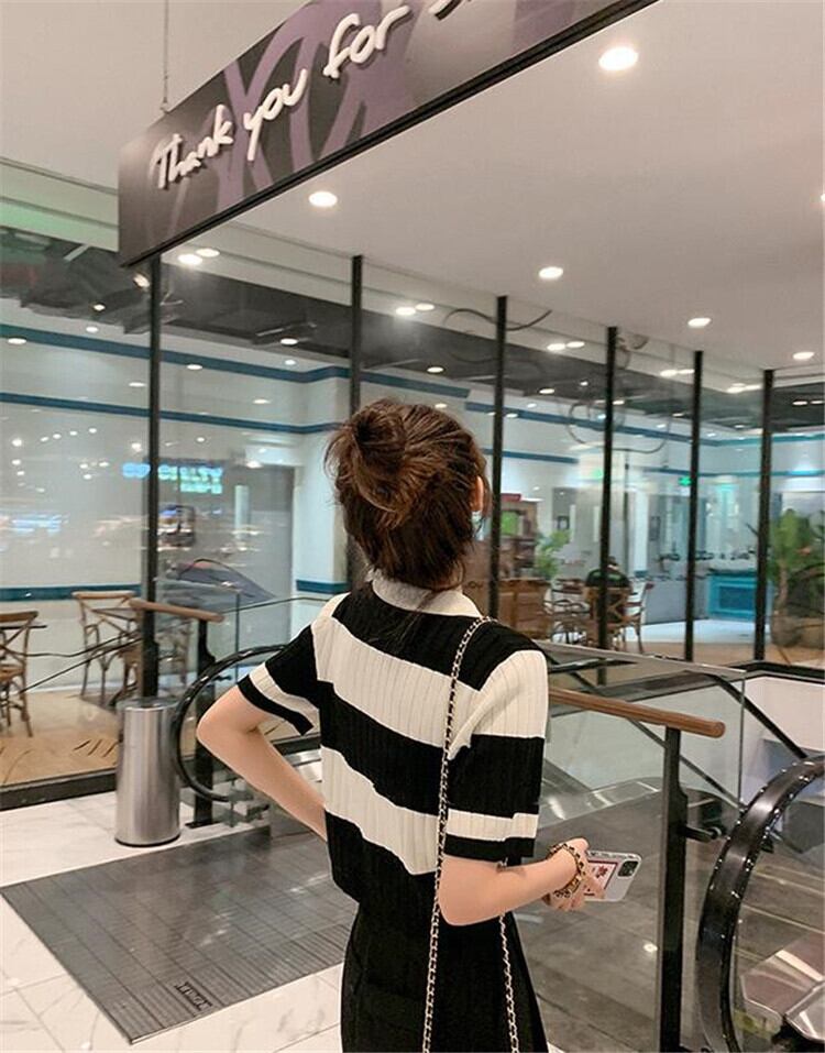 ボーダー トップス sweet系 夏 オープンウエスト 快適である 半袖