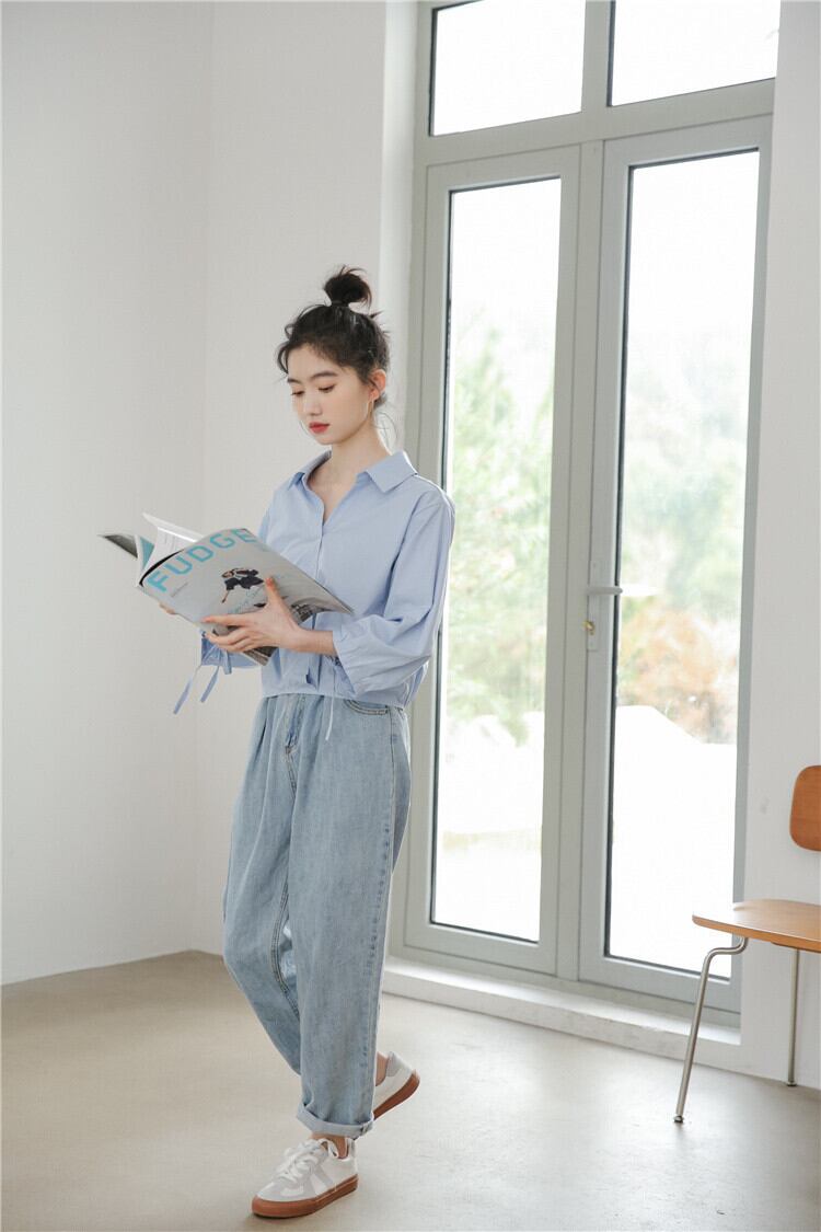 通勤する オシャレ Vネック シャツ ゆったりする シンプル 春 新スタイル