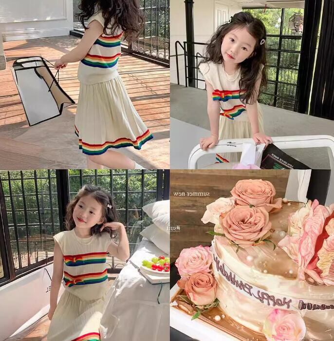 2024新品子供服 トップス+スカート ニットセットアップ 90-140CM